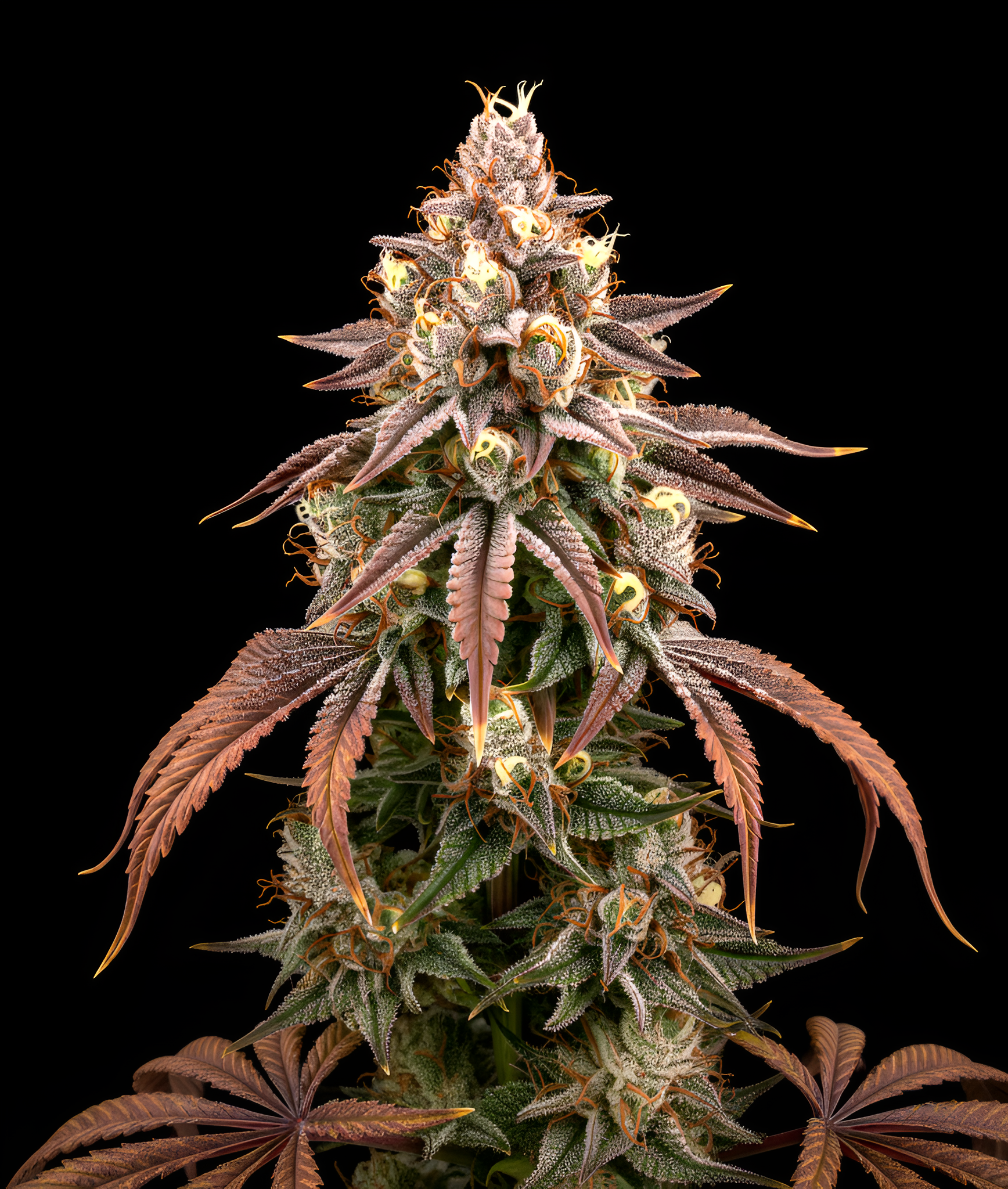 Hybrid with reddish colorations on indica structure. Consistent production, fruity-citric terpenes, predictable flowering.